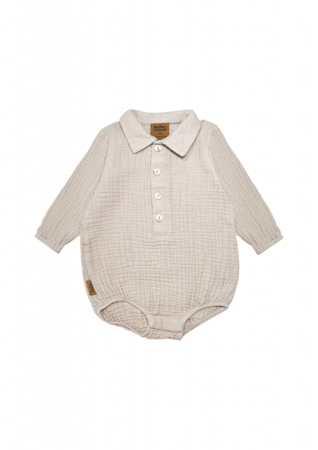Creme Baby Romper with a Collar & Buttons - Organic Muslin