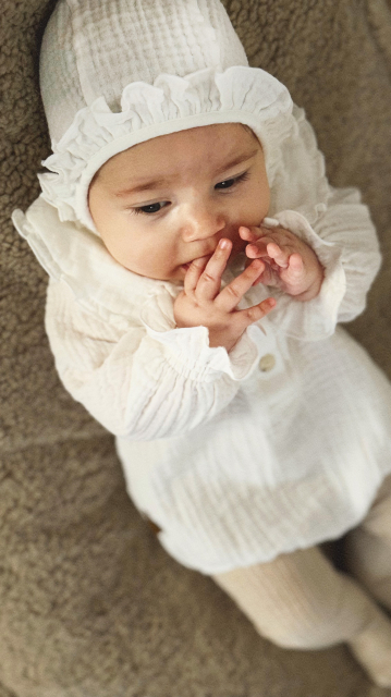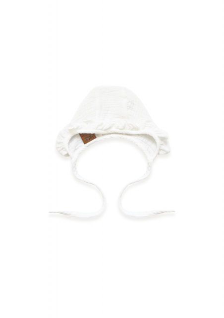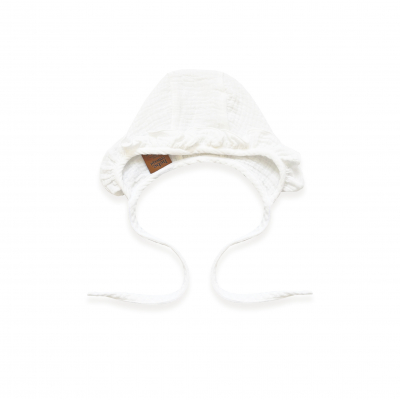 White Baby Hat with a Loevely Ruffle - Organic Muslin