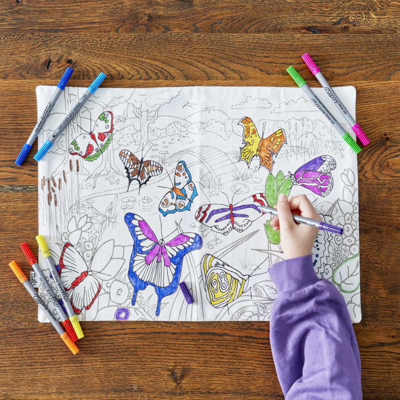 Liblikatega Korduvkasutatav Värvitav Lauamatt Koos Pestavate Markeritega Kotikeses