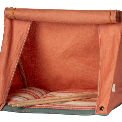 -Võta oma hiired telkima! See kokkuvolditav telk on ideaalne matkakaaslane - puupulgad aitavad telgiukse üles tõsta ja pakuvad vihma eest varju. Väliskanga pinnal on õhuke kate, mis loob ehtsa, realistliku viimistluse. Ära unusta hiirtele ka magamiskotte kaasa pakkida.