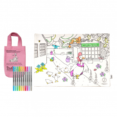 Jemima Puddle-Duck Reusable Colouring Placemat with Wash-Out Markers in Mini Tote Bag
