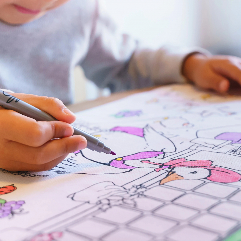 When your little one is ready to hop into the next tale, simply pop the placemat on a warm wash, the ink completely disappears, and it’s ready for more adventures – colour and reuse endlessly!
