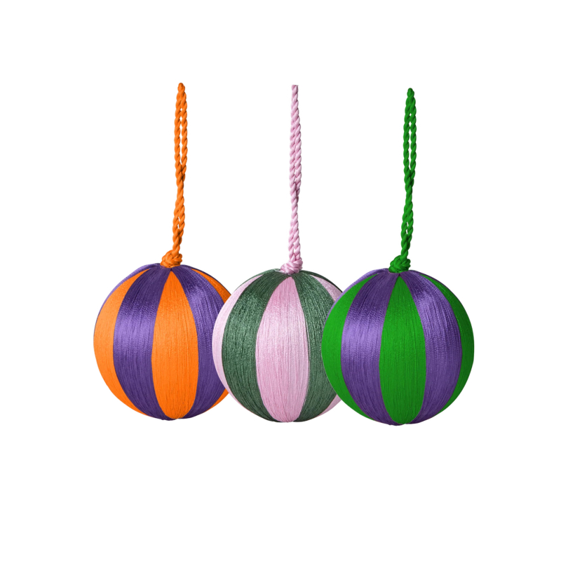 -Sprinkle some Christmas magic throughout your home with this beautiful set of 3 small Christmas baubles. They’re decorated with shiny candy stripes in wonderful color combinations - perfect for creating that cozy holiday feeling.