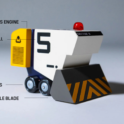 -The bulldozer of the Sector 9 crew of vehicles! Dozzie (like 'dozer' in bulldozer!) has a magnetically detachable bulldozer blade and is ready to take on the biggest challenges.