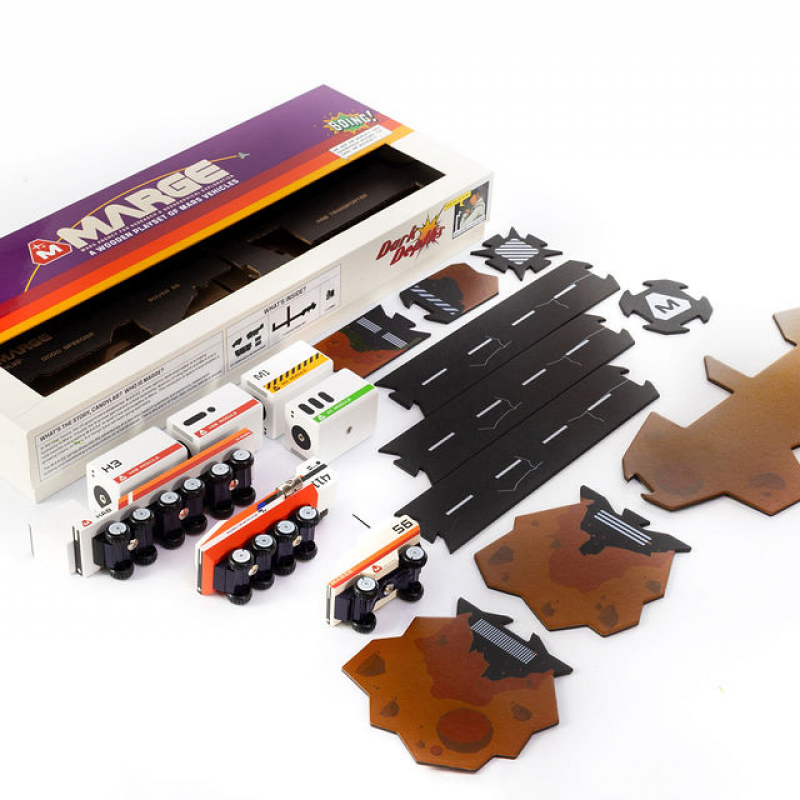 M.A.R.G.E. is a collection of three playsets, centered around the Martian adventures of a fearless band of scientists and their vehicles. This is their story, told as 3 playsets and fully illustrated graphic stories. With option to buy each vehicle seperatly.