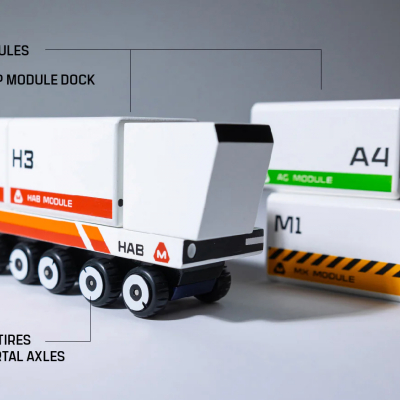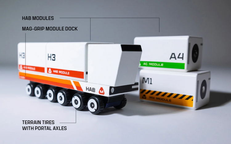 9 Unique Mars-themed vehicles, paper puzzle roads and awesome original comic books! Crafted from high-quality, sustainable wood, these play sets are not just toys – they are part of a larger story and a fully developed play universe :)