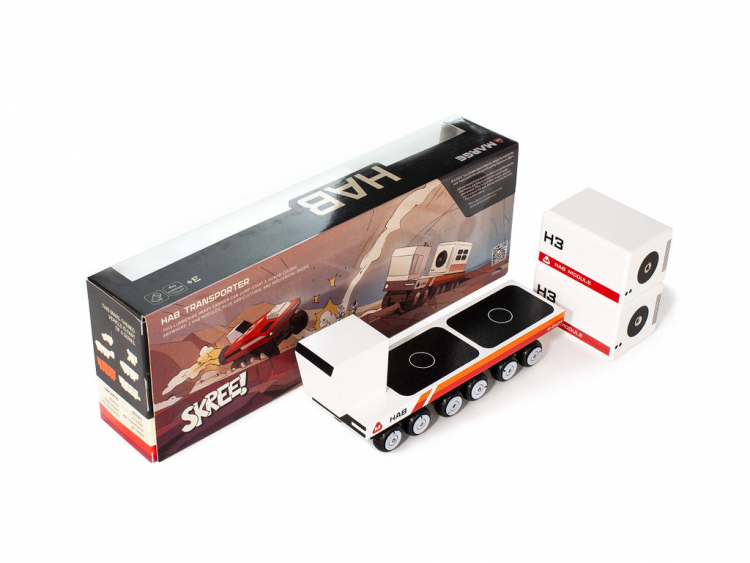 -The HAB Transporter is an essential vehicle for the settlers of Mars. Equipped with a suspension base, this vehicle transports many modules for the MARGE crew.