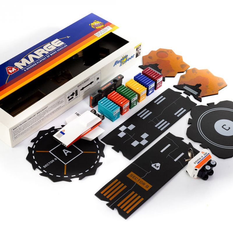M.A.R.G.E. is a collection of three playsets, centered around the Martian adventures of a fearless band of scientists and their vehicles. This is their story, told as 3 playsets and fully illustrated graphic stories. With option to buy each vehicle seperatly.