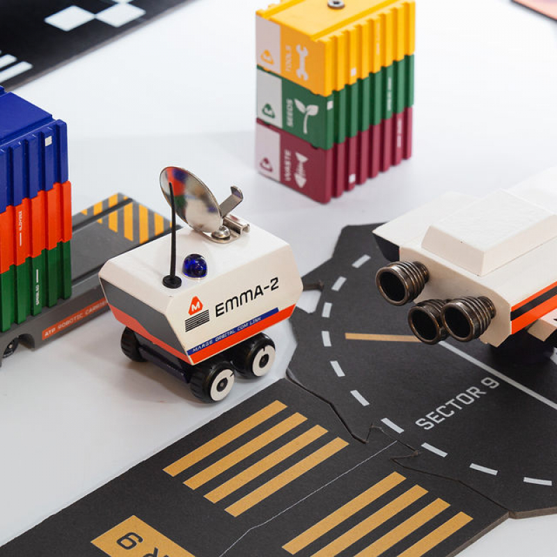 9 Unique Mars-themed vehicles, paper puzzle roads and awesome original comic books! Crafted from high-quality, sustainable wood, these play sets are not just toys – they are part of a larger story and a fully developed play universe :)
