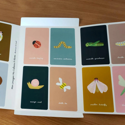 52 magnets +1 picture book of insects and small garden creatures in French and English.