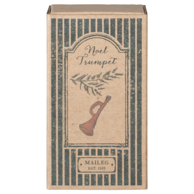 Decorate your home and Christmas tree with metal ornaments. They have beautiful handpainted details. Mix all the different Maileg ornaments to create a personal collection. The trumpet comes in a small giftbox.