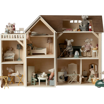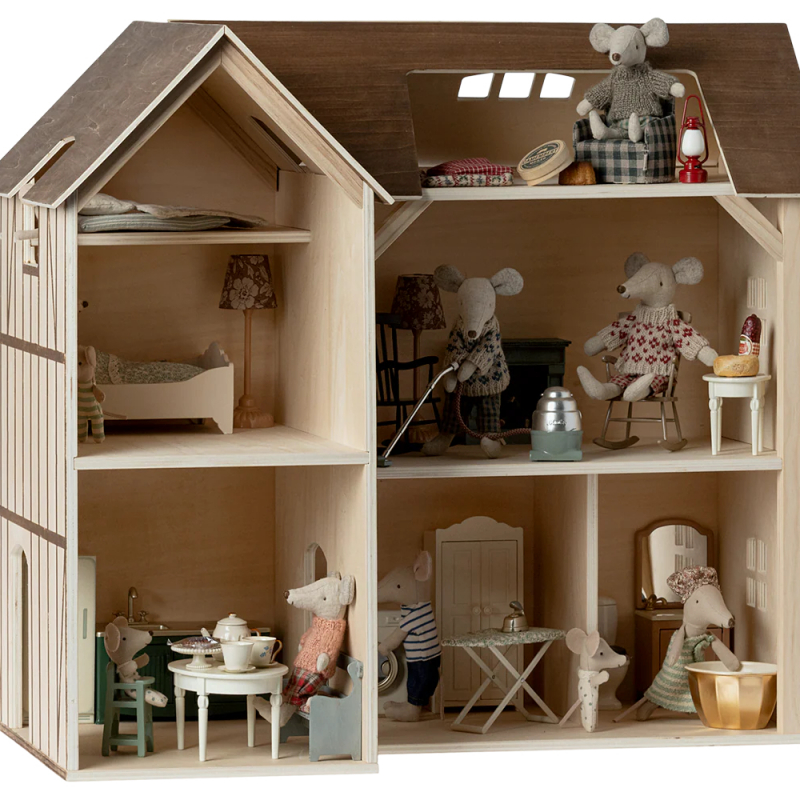 -Maileg Mouse hole Farmhouse is the perfect home for your mouse family. Decorate each room with your favorite furniture and accessories. If the house gets too small you can add the bonus room.