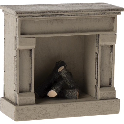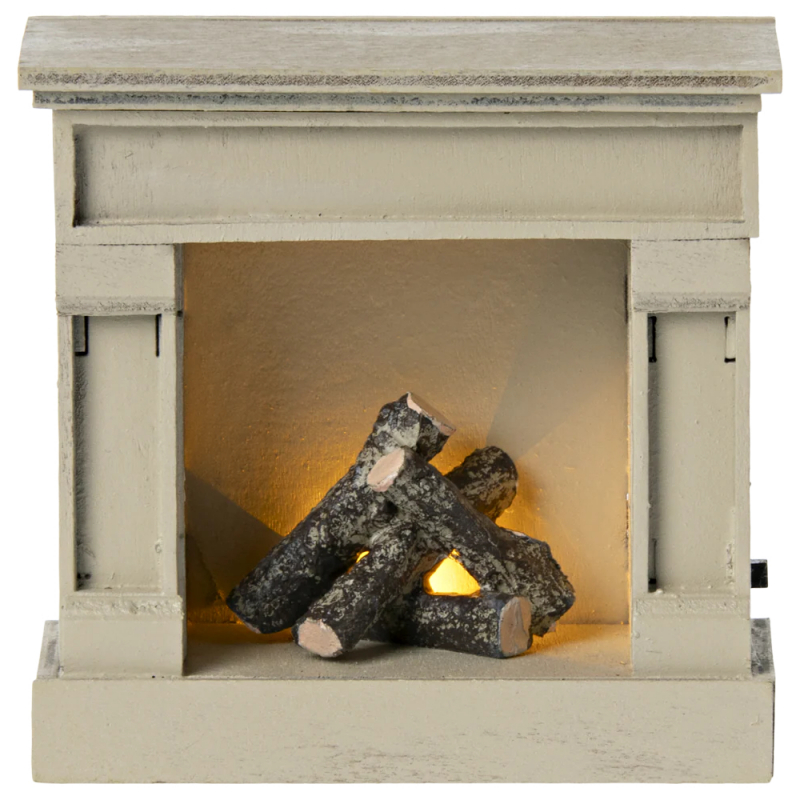 -Use this wooden fireplace to warm your miniature home. It has an authentic look and a vintage finish. Remember to turn off when your friends go to bed. The product comes without a battery. You can add a coin cell battery (CR2032).