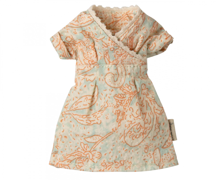 -A classic Maileg item; Mum mouse in a light dress. This mouse fits furniture and accessories in size mouse. Buy more clothes separately. Clothes in size mum/dad fits this mouse.