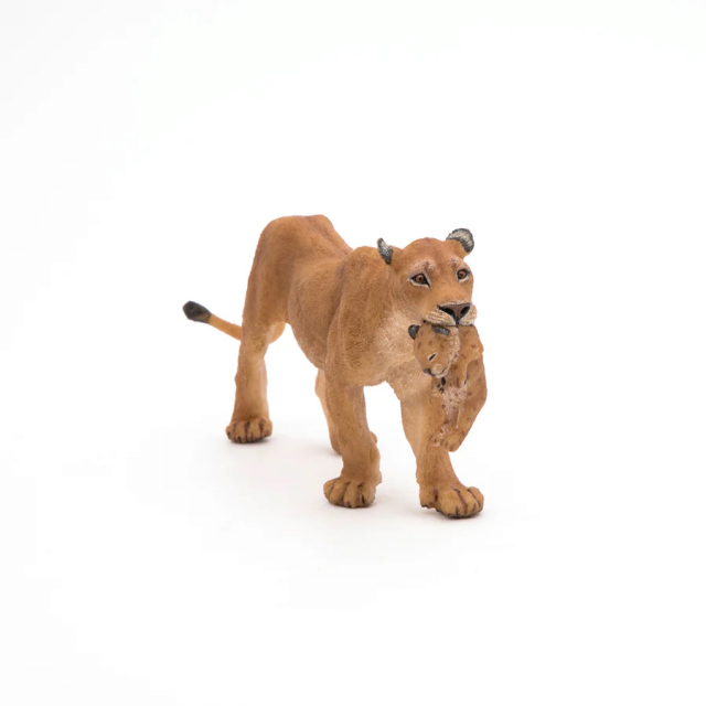 This Papo figurine realistically and tenderly illustrates the bond between a lioness and her cub: detailed tawny fur, protective posture, and mischievous attitude of the cub. A must-have piece to complete a collection of wild animals, invent emotional stories, or educate children about family ties in the animal kingdom.