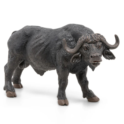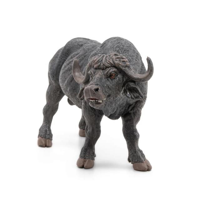 This Papo figurine realistically reproduces the buffalo: robust horns, detailed musculature and powerful posture. An ideal model to enrich a collection of wild animals, invent stories in the heart of the savannah or to educate children about the life of the great African herds.