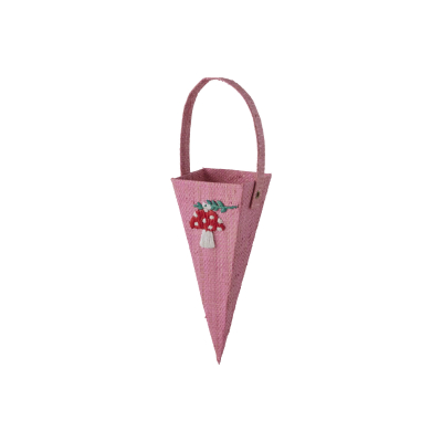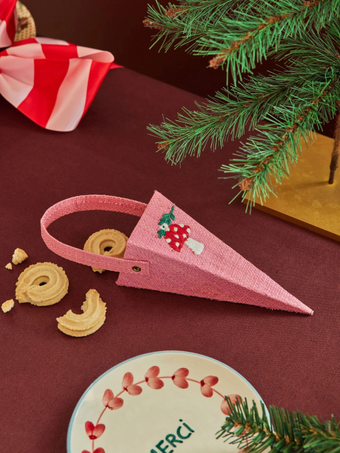 Small Raffia Pink Christmas Ornament - Mushroom Embroidery