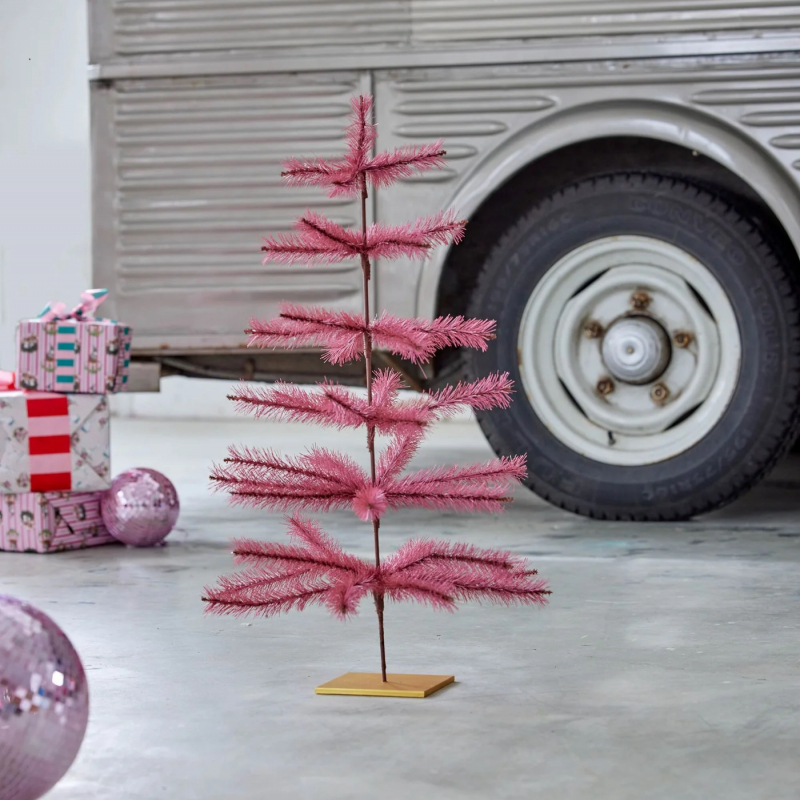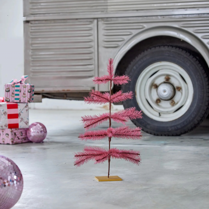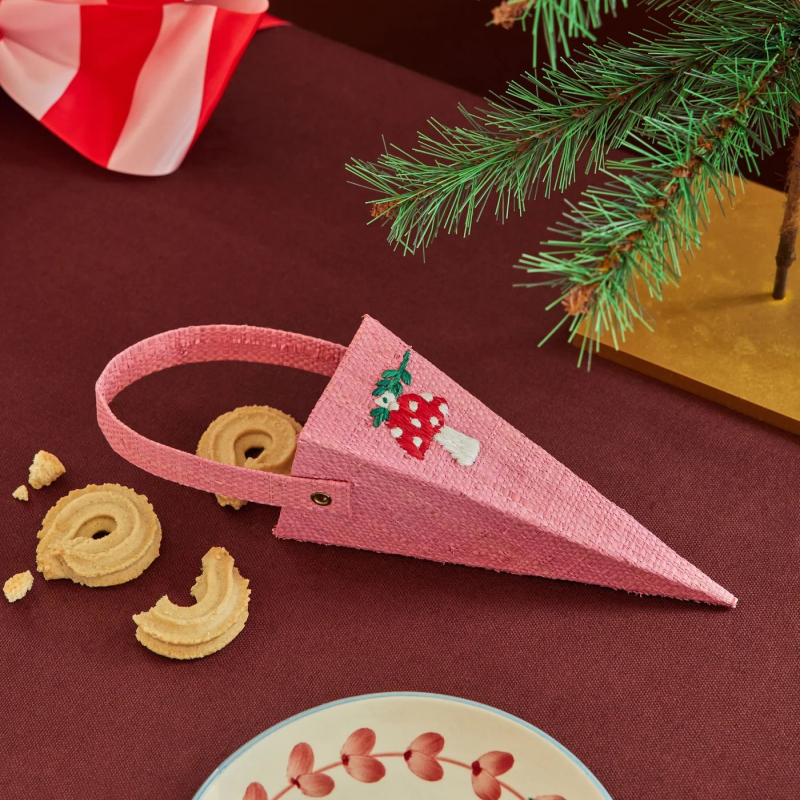 Small Raffia Pink Christmas Ornament - Mushroom Embroidery