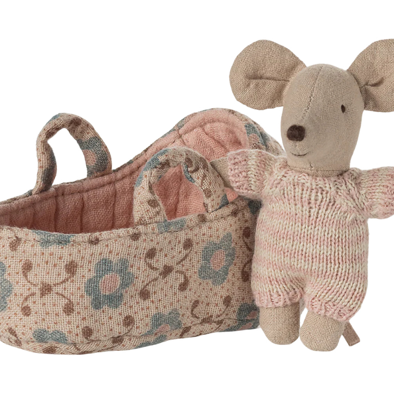 Maileg Baby Mouse in Carry Cot - Rose